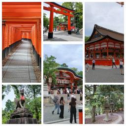 Kyoto leidet unter dem Venedig Syndrom. Die Stadt ist einmal zu oft als Must-See und Geheimtipp in den Reiseführern aufgetaucht. Dazu zieht das Meiko / Geisha Viertel Neugierige aus aller Welt an. Das Resultat: 365 Tage im Jahr quetschen sich zu viele Touristen "Rüssel-an-Schwanz" durch zu enge Strassen auf der Suche nach dem schönsten Foto, das vorher bestimmt noch keiner gemacht hat. Wer sich einmal elegant fühlen möchte, kann sich für viel Geld in einen Hakata (traditionelle jap. Kleidung, nicht Kimono) schnüren und frisieren lassen. Wir schenken uns auf Anraten meiner Schwägerin diesen ganzen Teil, auch weil es heute 30 Grad sind, und fahren direkt zum Schrein. Auch hier ist es brechend voll aber um zu den berühmten roten Toren zu gelangen muss man viele Treppenstufen überwinden. Beim 1. Plateau trennt sich die Spreu vom Weizen und es wird leerer. Auch hier müssen wir wieder Slalom an den ganzen Selfie Stativen laufen - so langsam geht mir die Selfie Mania auf die Nerven. Der Anblick aber ist fantastisch. Ein langer Gang roter Tore ("tori") breitet sich vor uns aus. Jedes Tor ist eine Spende an den Schrein. Wir laufen den Gang in Ruhe ab und dann gelingt mir sogar ein Foto von einem leeren Gang, als wären wir die einzigen hier. Bis wir von einer sehr lauten chinesischen Reisetruppe buchstäblich über den Haufen gerannt werden. Eine gelangweilte Reiseleiterin leiert ihre Erklärungen runter und die ca. 20 Teilnehmer folgen ihr. Wir schlendern langsam hinter der Lawine her. Da die Schreine allesamt für ihre Finanzierung selbst zuständig sind (so etwas wie Kirchensteuer gibt es nicht), gibt es sehr viele Souvenir Geschäfte und Imbissbuden am Fuße des Schreins. Wir halten den Ausflug kürzer als geplant - 2 Babies in Tragen und ein Kleinkind bei 30 Grad macht uns dann doch etwas zu schaffen. Im sauberen, klimatisierten Zug fahren wir pünktlich zurück - ein Traum für uns DB geplagte. Aber davon erzähle ich ein anderes Mal.